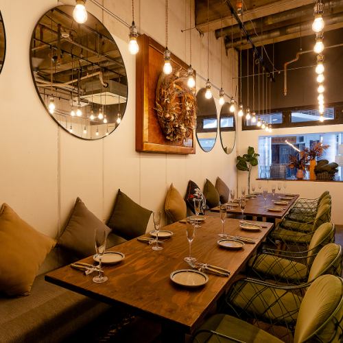 【忘年会・新年会利用も!】白を基調とした店内はカジュアルでありつつもオシャレな内装です。貸し切りのご利用は20名様~でのご案内可能です。プロジェクターもございます!各種ご宴会やパーティーに最適なコースや料理、レイアウト、ご予算もご相談にのっております♪大人数のご予約も承っております。